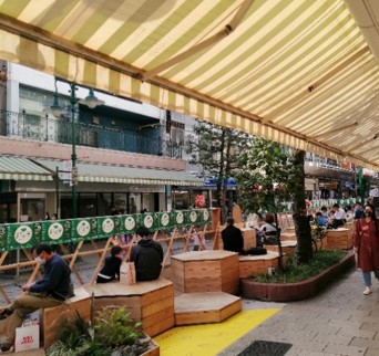 【事業内容】 再構築(ハード施策) 【具体内容】 ・中央分離帯や停車帯など、車線以外の車道空間を減らした ・市道呉服町通線は全幅員6.0mの一車線の道路であるが、進行方向左側路側部に静岡県警が管理していた路上パ-キングによる駐車帯が存在し、有効幅員は4.0mであった。令和2年の路上パーキング制度の廃止に伴い、一部区間の駐車帯を利用することで有効幅員を減少することなくパークレットの設置を実施した。 【制度活用】 【事業内容】 利活用 【具体内容】 ・パークレットの設置 【制度活用】 ・通常の道路占用・使用
